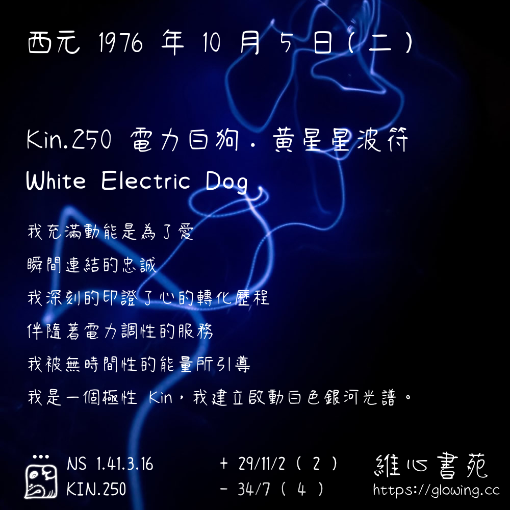 電力白狗的 KIN260 肯定句是:【我能夠用我獨特自在的方式去展現愛的流動】