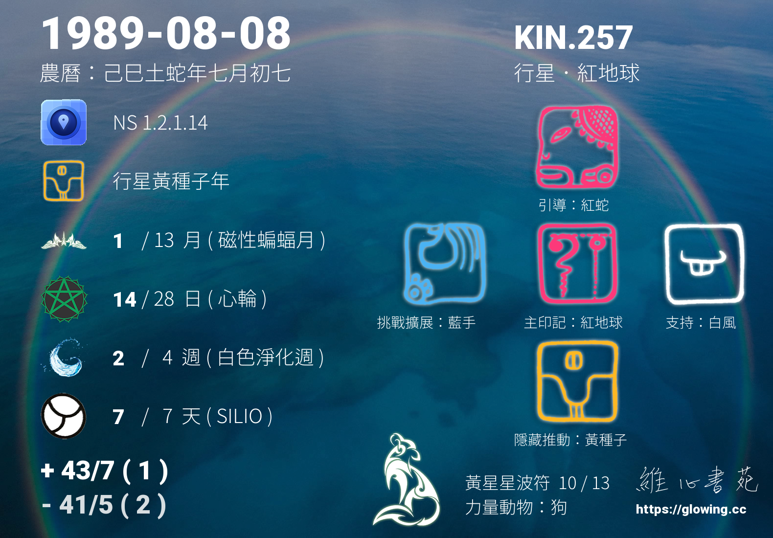 我們可以稱 KIN 257 為 【行星紅地球】 、 【行星的紅地球】 、 【黃星星波符 之 行星紅地球】 也可以是 【行星紅地球.黃星星波符】 ,你比較喜歡哪一個稱號呢?