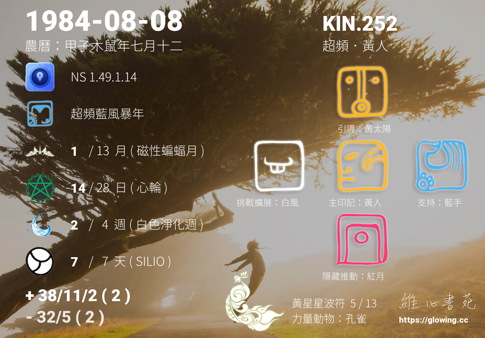 KIN.252 位於 黃星星波符 13 天中的第 5 天,銀河音階為調性 5