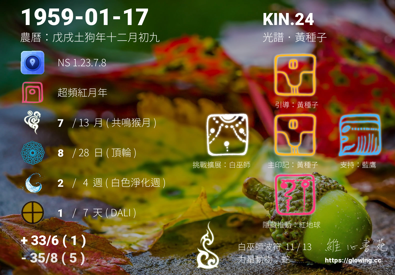 我們可以稱 KIN 24 為 【光譜黃種子】 、 【光譜的黃種子】 、 【白巫師波符 之 光譜黃種子】 也可以是 【光譜黃種子.白巫師波符】 ,你比較喜歡哪一個稱號呢?