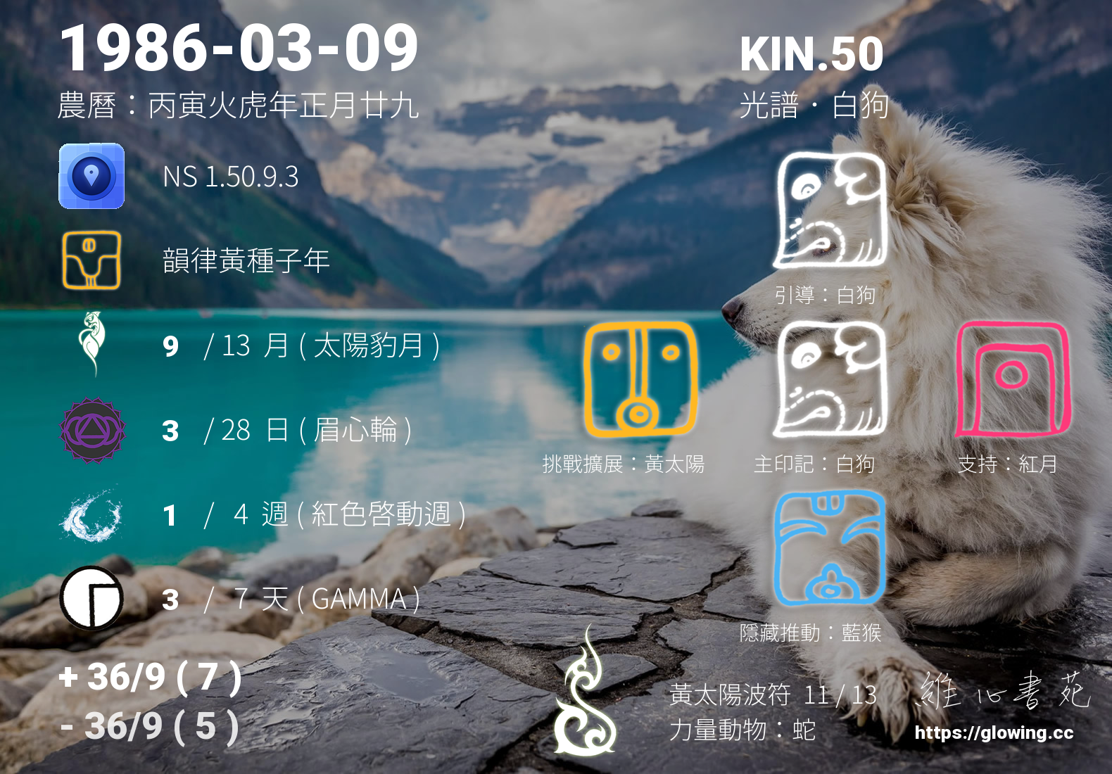 今天的星際原型圖騰為白狗,我們稱之為主印記, 白狗的主題是愛與忠誠,總是給人一種全然付出不求回報的感受,然而請千萬記得唯有先愛自己才能給予他人全然的愛是永恆的真理。