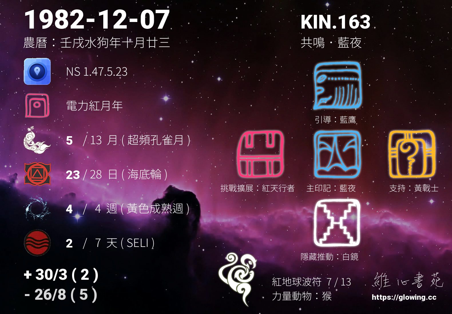 今天的星際原型圖騰為藍夜,我們稱之為主印記, 藍夜是夢想家的原型,有將夢想成真的天賦,直覺力強,在實踐夢想的過程中樂於分享將能更享豐盛。