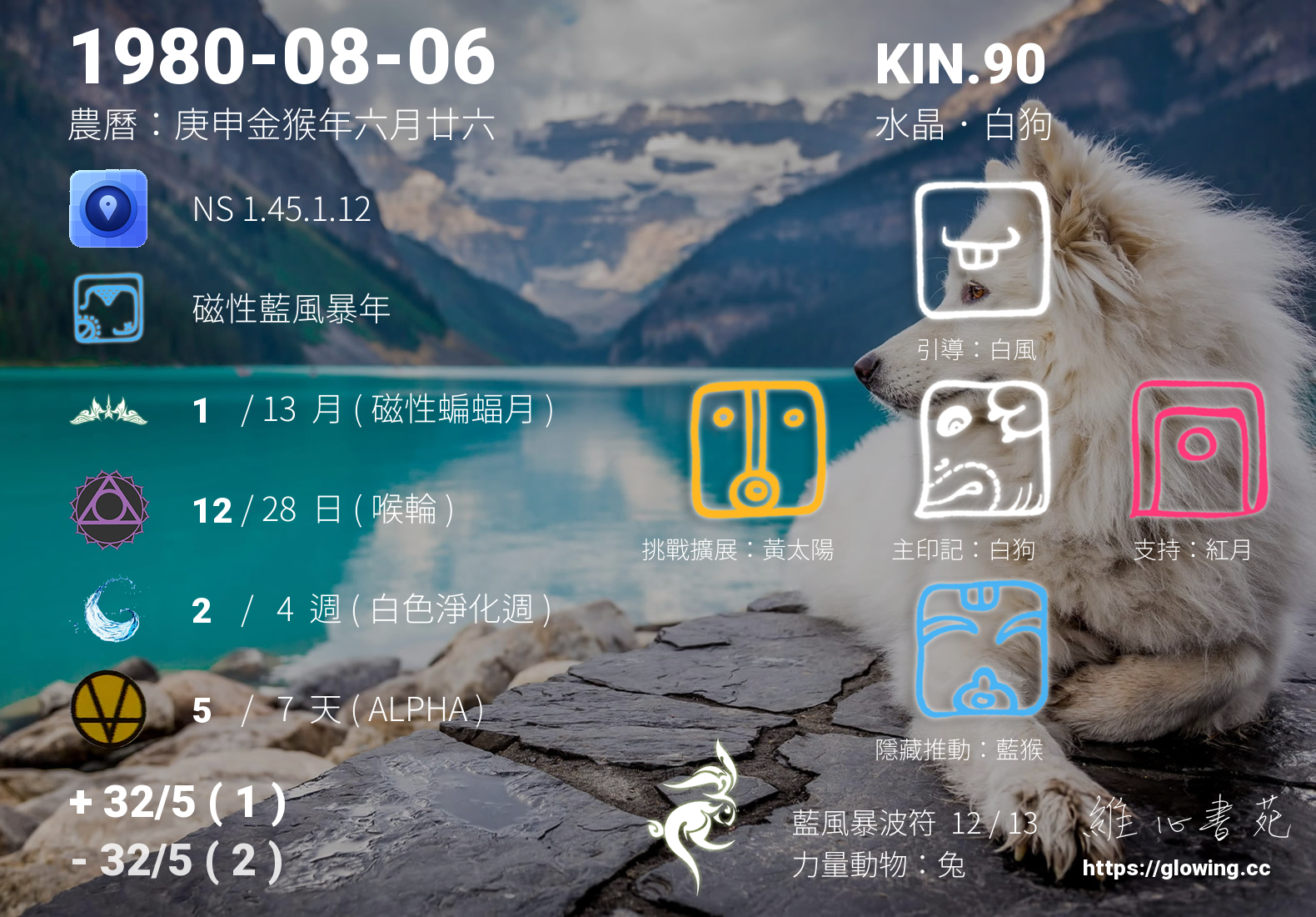我們可以稱 KIN 90 為 【水晶白狗】 、 【水晶的白狗】 、 【藍風暴波符 之 水晶白狗】 也可以是 【水晶白狗.藍風暴波符】 ,你比較喜歡哪一個稱號呢?