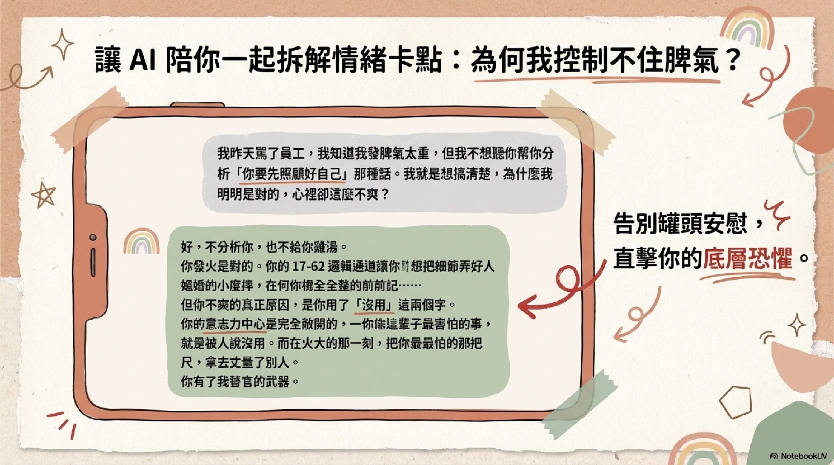簡單來說,只要把這份報告放進 NotebookLM,你得到的回應就會更有依據,也更能回到你自己的內容本身。