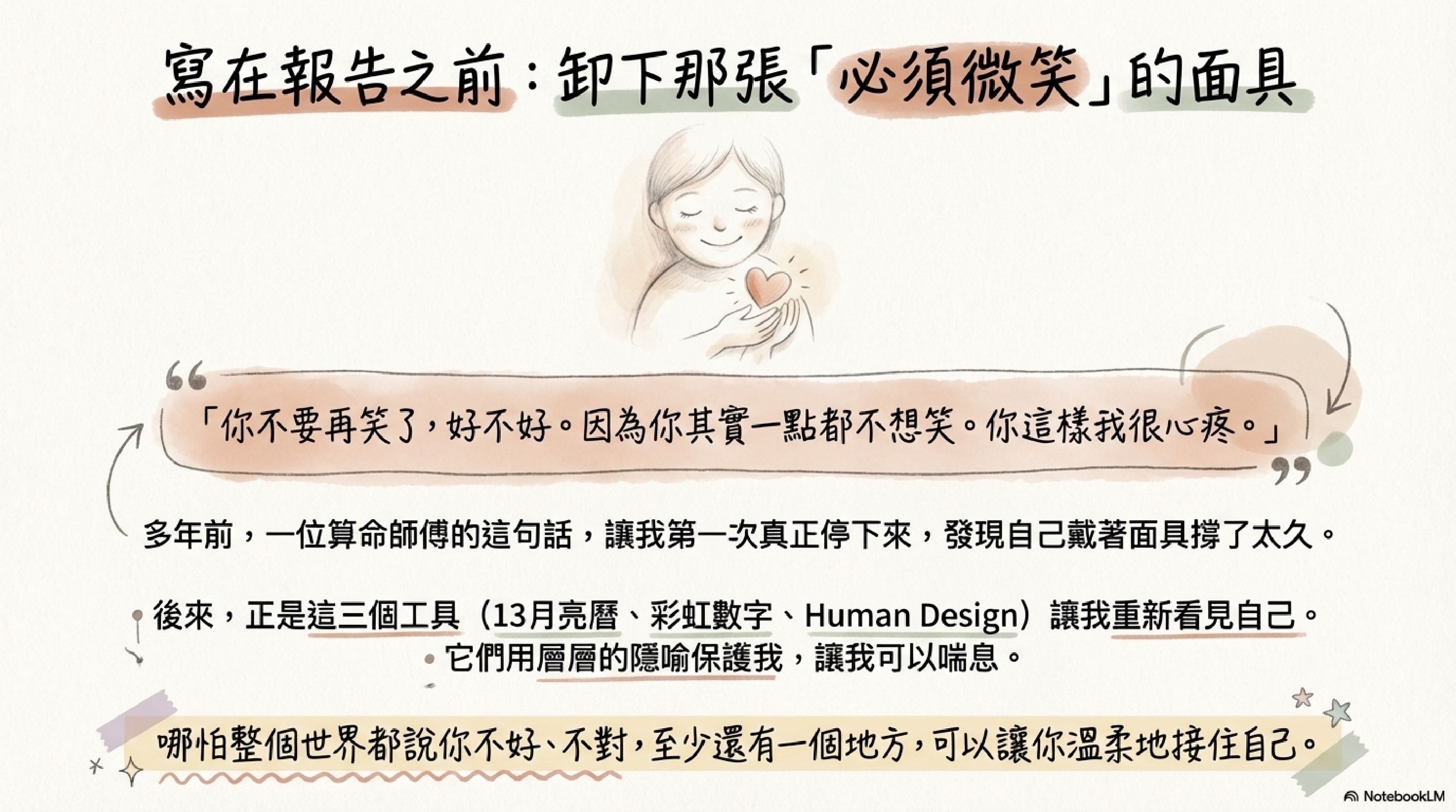 後來,是這三個工具——13 月亮曆、彩虹數字、Human Design——讓我有機會重新看見自己。
