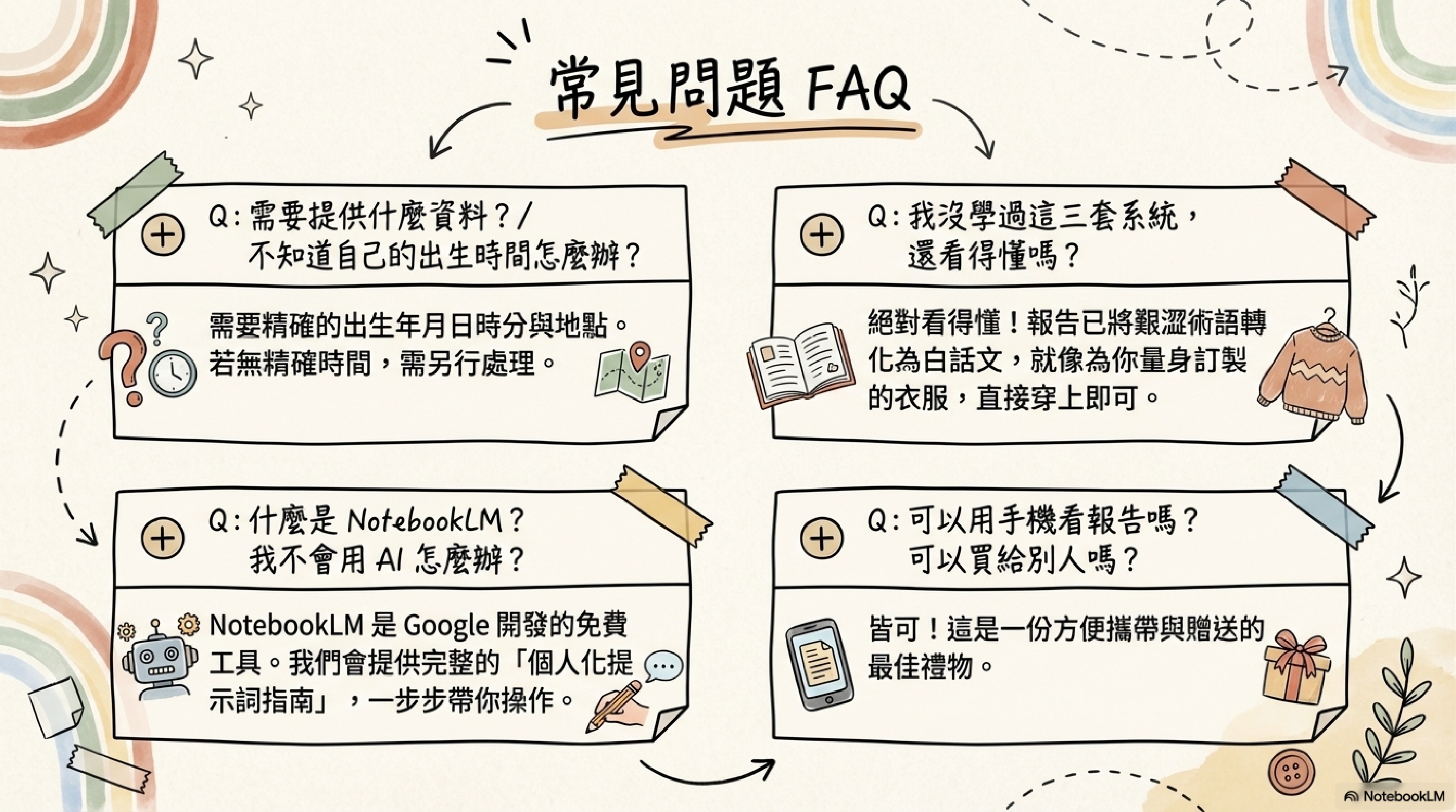 可以。我們會在報告前面先用白話整理每套工具的核心概念;但更重要的是,這份報告不是教科書,而是一份專屬於你的個人解讀內容。你不需要先學會任何一套系統,才能從中理解自己。就像穿一套量身訂製的衣服,重點是合不合身,而不是你懂不懂打版。
