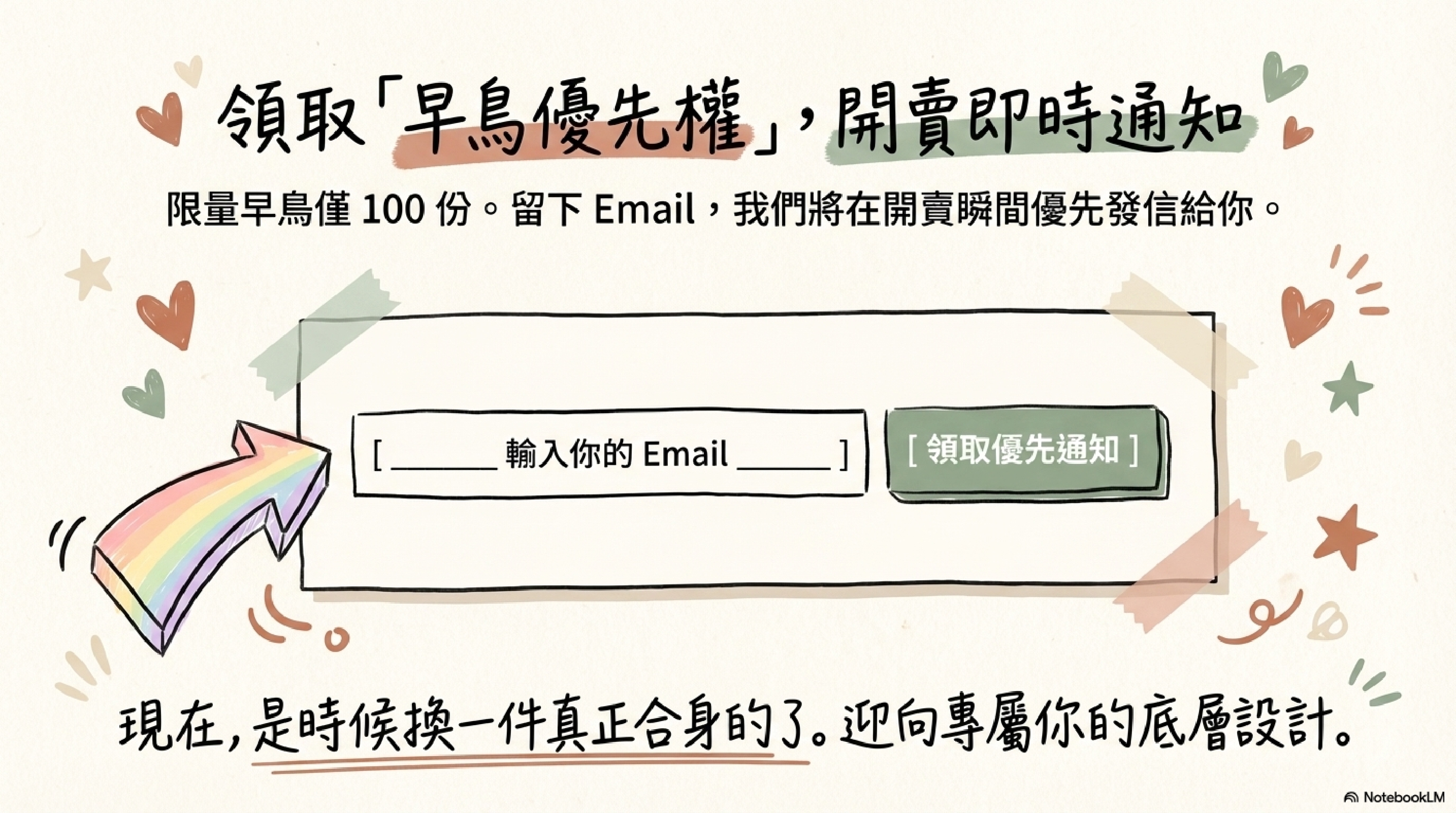 你現在沒空看完也沒關係,可以先 留 Email 卡位早鳥,等開賣通知。