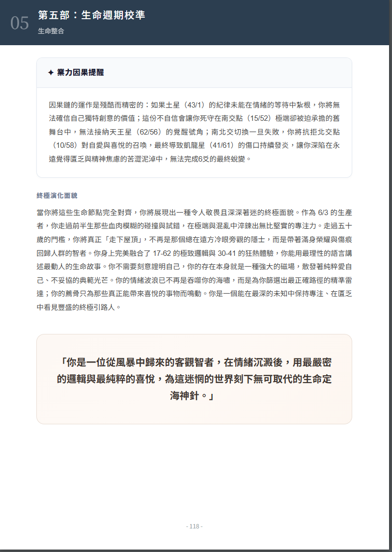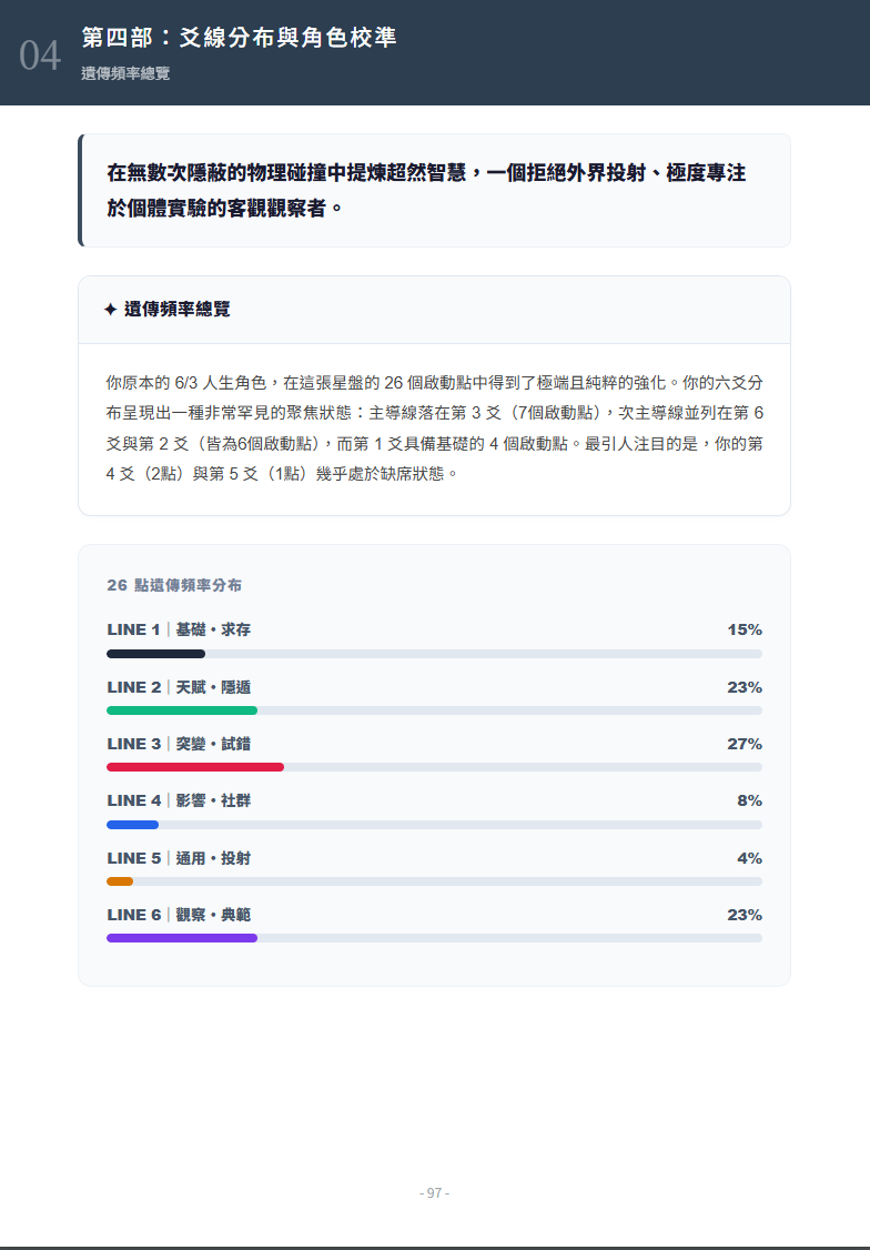 這份報告本身,就已經是一份完整的閱讀內容。你可以把它當成一本書,慢慢讀、慢慢對照。光是直接閱讀,就足以讓你對自己有很深的理解,這本身就是完整的價值。