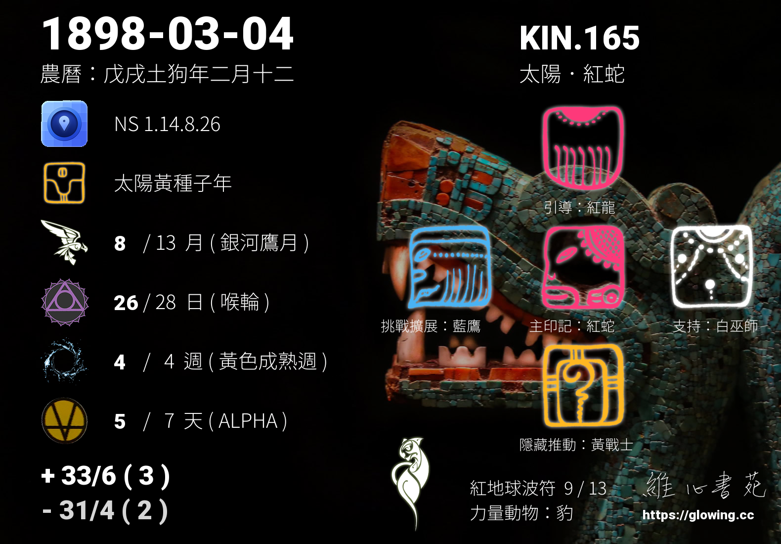 我們可以稱 KIN 165 為 【太陽紅蛇】 、 【太陽的紅蛇】 、 【紅地球波符 之 太陽紅蛇】 也可以是 【太陽紅蛇.紅地球波符】 ,你比較喜歡哪一個稱號呢?