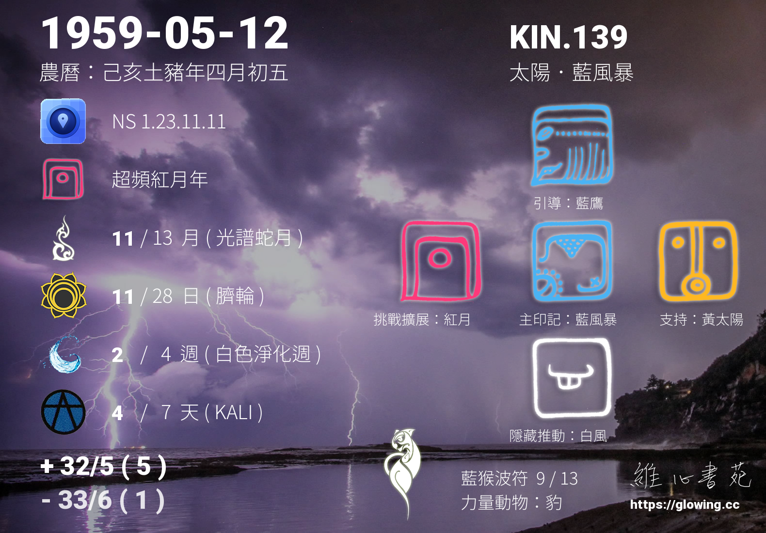 我們可以稱 KIN 139 為 【太陽藍風暴】 、 【太陽的藍風暴】 、 【藍猴波符 之 太陽藍風暴】 也可以是 【太陽藍風暴.藍猴波符】 ,你比較喜歡哪一個稱號呢?