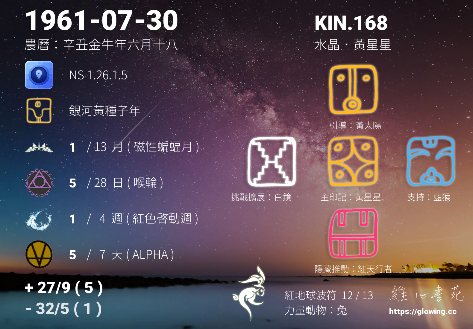 我們可以稱 KIN 168 為 【水晶黃星星】 、 【水晶的黃星星】 、 【紅地球波符 之 水晶黃星星】 也可以是 【水晶黃星星.紅地球波符】 ,你比較喜歡哪一個稱號呢?