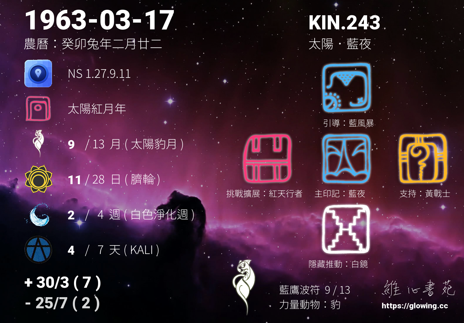 我們可以稱 KIN 243 為 【太陽藍夜】 、 【太陽的藍夜】 、 【藍鷹波符 之 太陽藍夜】 也可以是 【太陽藍夜.藍鷹波符】 ,你比較喜歡哪一個稱號呢?