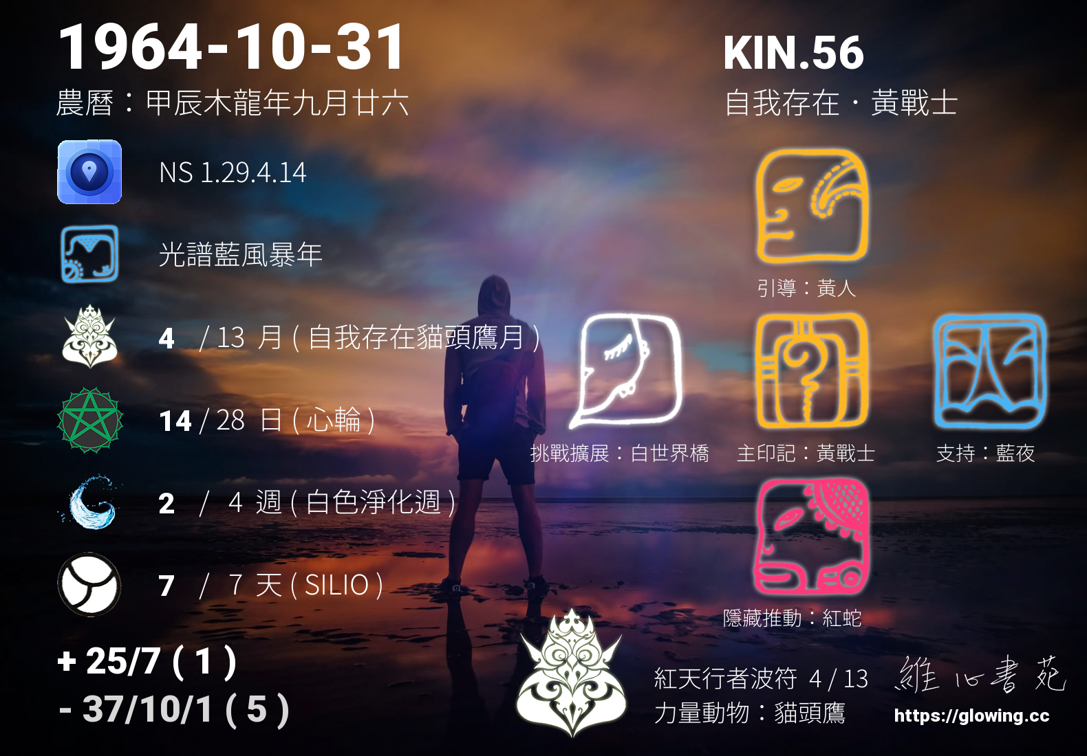 我們可以稱 KIN 56 為 【自我存在黃戰士】 、 【自我存在的黃戰士】 、 【紅天行者波符 之 自我存在黃戰士】 也可以是 【自我存在黃戰士.紅天行者波符】 ,你比較喜歡哪一個稱號呢?