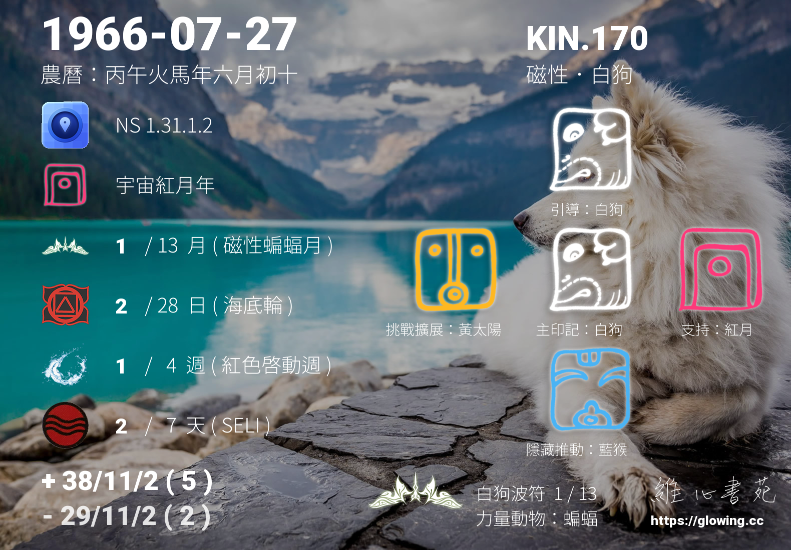 我們可以稱 KIN 170 為 【磁性白狗】 、 【磁性的白狗】 、 【白狗波符 之 磁性白狗】 也可以是 【磁性白狗.白狗波符】 ,你比較喜歡哪一個稱號呢?