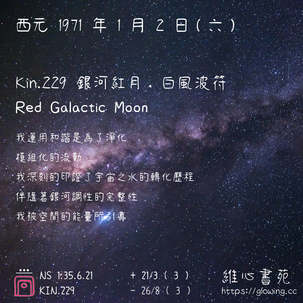 我們可以稱 KIN 229 為 【銀河紅月】 、 【銀河的紅月】 、 【白風波符 之 銀河紅月】 也可以是 【銀河紅月.白風波符】 ,你比較喜歡哪一個稱號呢?