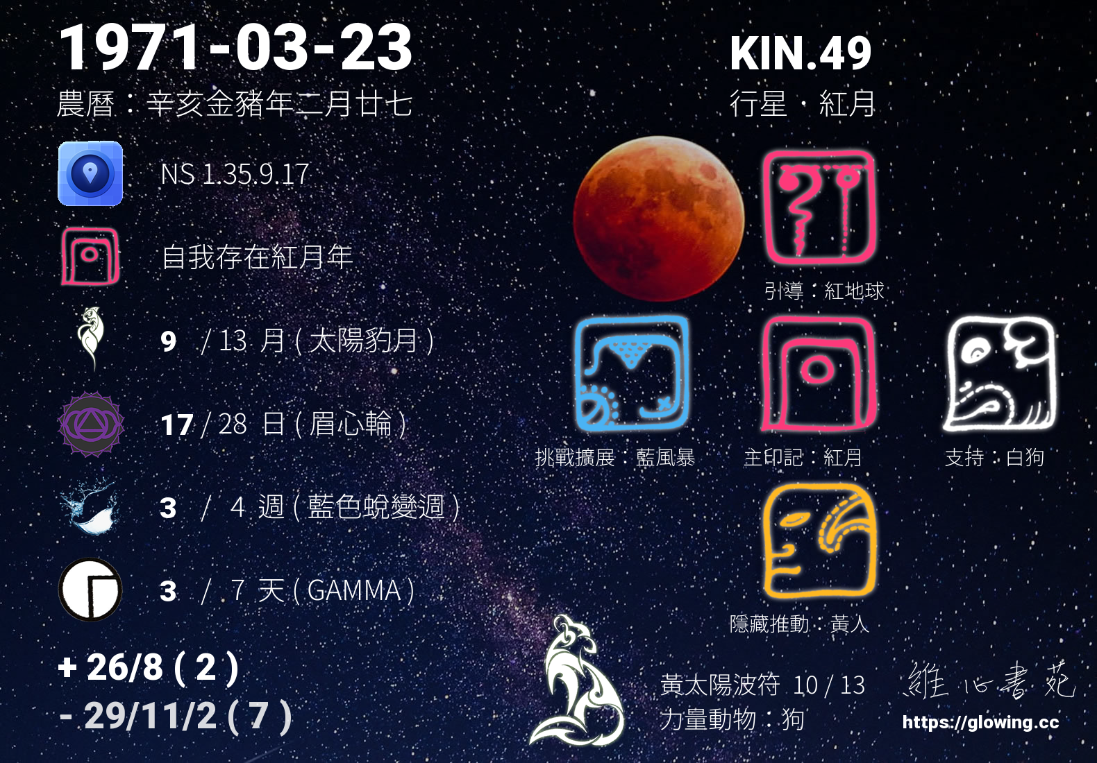 我們可以稱 KIN 49 為 【行星紅月】 、 【行星的紅月】 、 【黃太陽波符 之 行星紅月】 也可以是 【行星紅月.黃太陽波符】 ,你比較喜歡哪一個稱號呢?