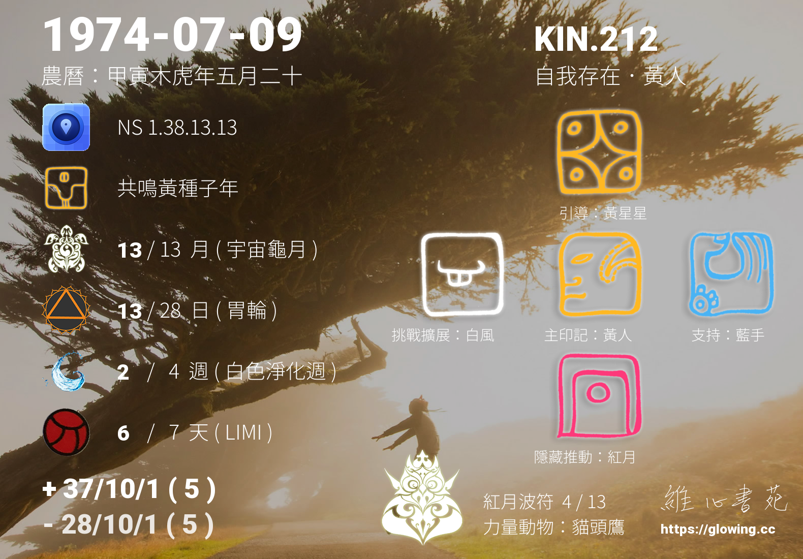 黃人的引導依據KIN的調性不同會有五種可能性,KIN.212的引導圖騰是黃星星 , 遵循著黃星星的引導,我們體會到美是沒有條件的,所有的眼光都蘊藏著愛的包容,因為包容著所有的不同,所以所有人的一生的都可以盡情地釋放出原本真實的樣貌。