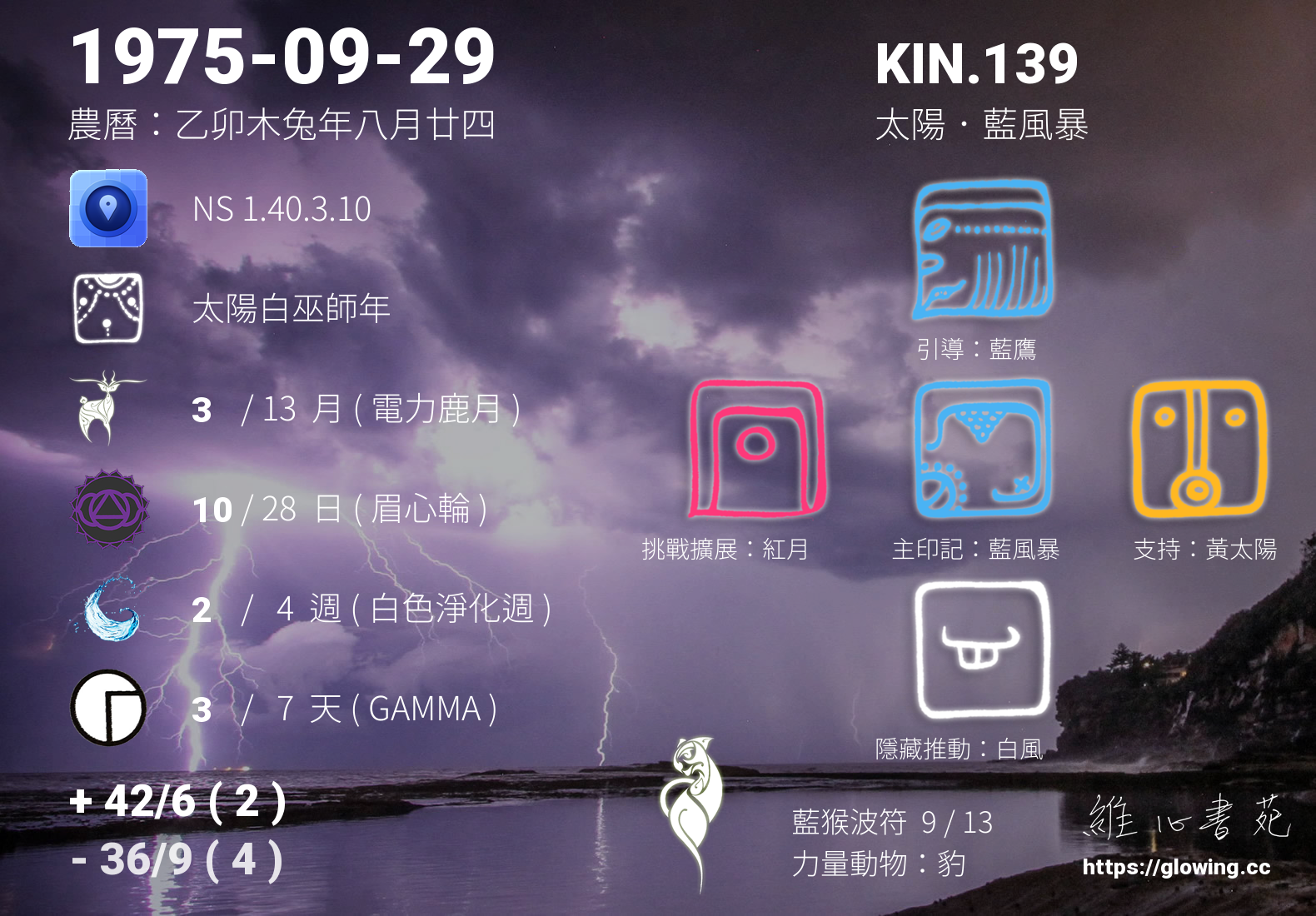 我們可以稱 KIN 139 為 【太陽藍風暴】 、 【太陽的藍風暴】 、 【藍猴波符 之 太陽藍風暴】 也可以是 【太陽藍風暴.藍猴波符】 ,你比較喜歡哪一個稱號呢?