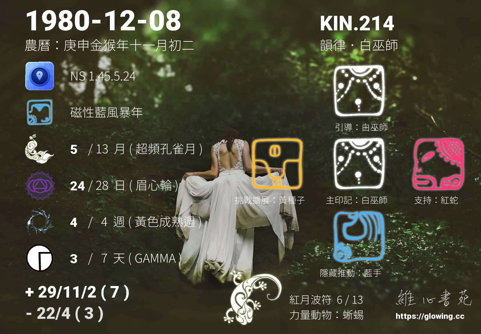 白巫師的引導依據KIN的調性不同會有五種可能性,KIN.214的引導圖騰是白巫師 , 白巫師引導著我們看見自己的不安,因為不安,所以我們尋求解答,因為不安,所以我在現實外,尋找安心的方向與方式。