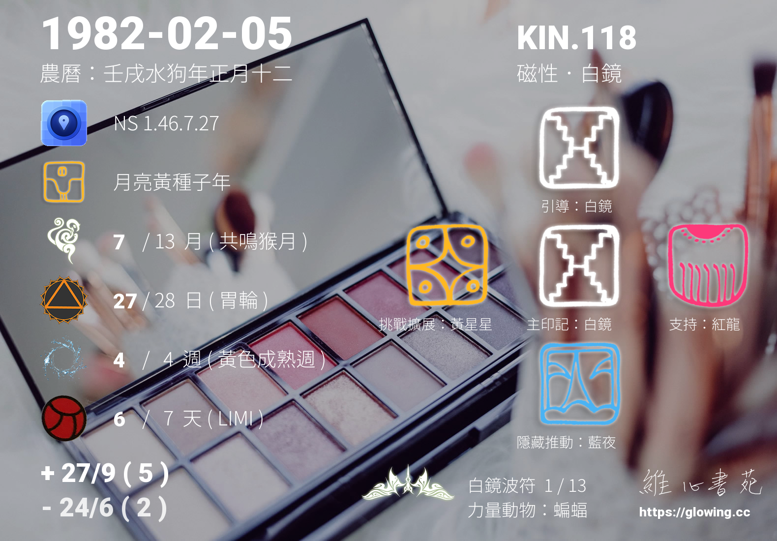 我們可以稱 KIN 118 為 【磁性白鏡】 、 【磁性的白鏡】 、 【白鏡波符 之 磁性白鏡】 也可以是 【磁性白鏡.白鏡波符】 ,你比較喜歡哪一個稱號呢?