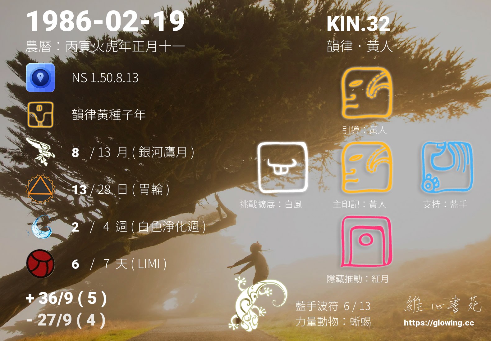 KIN.32 位於 藍手波符 13 天中的第 6 天,銀河音階為調性 6