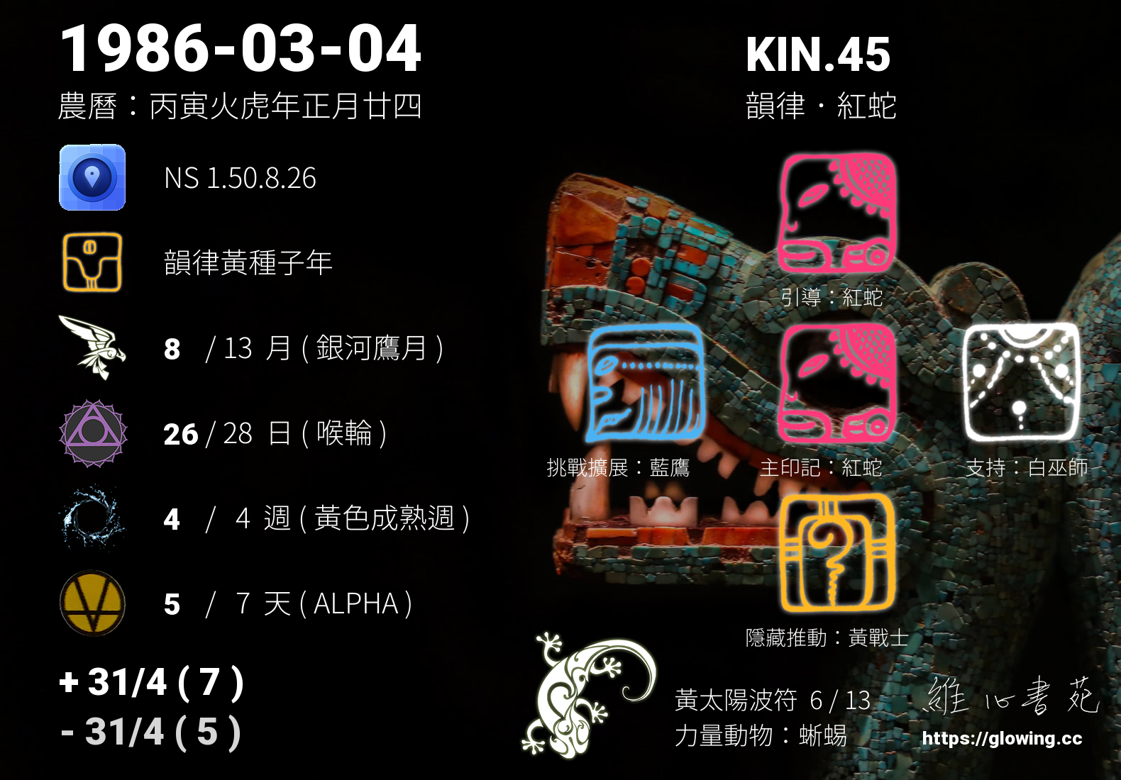 - PSI(行星記憶資料庫):KIN.173 自我存在 紅天行者