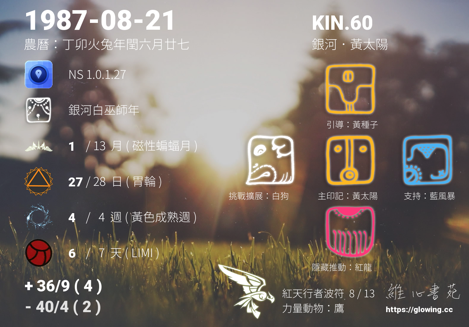 我們可以稱 KIN 60 為 【銀河黃太陽】 、 【銀河的黃太陽】 、 【紅天行者波符 之 銀河黃太陽】 也可以是 【銀河黃太陽.紅天行者波符】 ,你比較喜歡哪一個稱號呢?