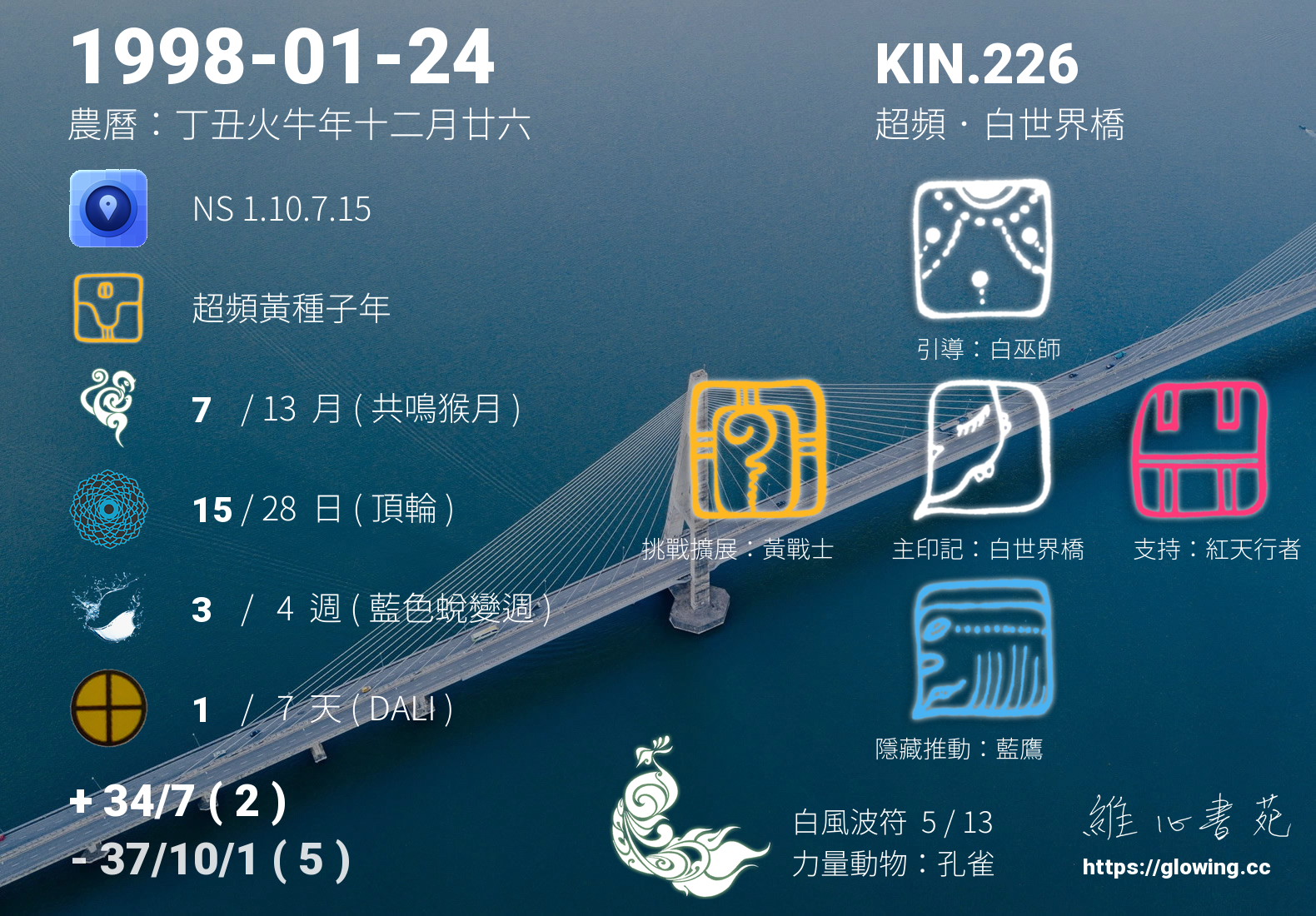 我們可以稱 KIN 226 為 【超頻白世界橋】 、 【超頻的白世界橋】 、 【白風波符 之 超頻白世界橋】 也可以是 【超頻白世界橋.白風波符】 ,你比較喜歡哪一個稱號呢?