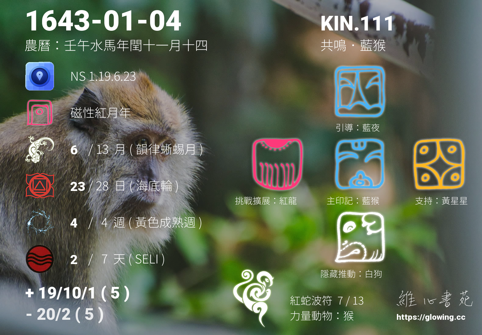 我們可以稱 KIN 111 為 【共鳴藍猴】 、 【共鳴的藍猴】 、 【紅蛇波符 之 共鳴藍猴】 也可以是 【共鳴藍猴.紅蛇波符】 ,你比較喜歡哪一個稱號呢?