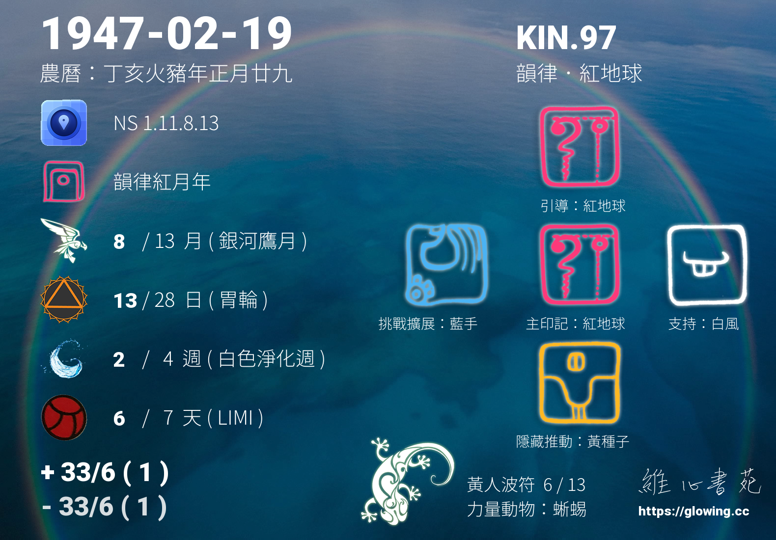 | 後天數/主命數 | 33/6(1) |