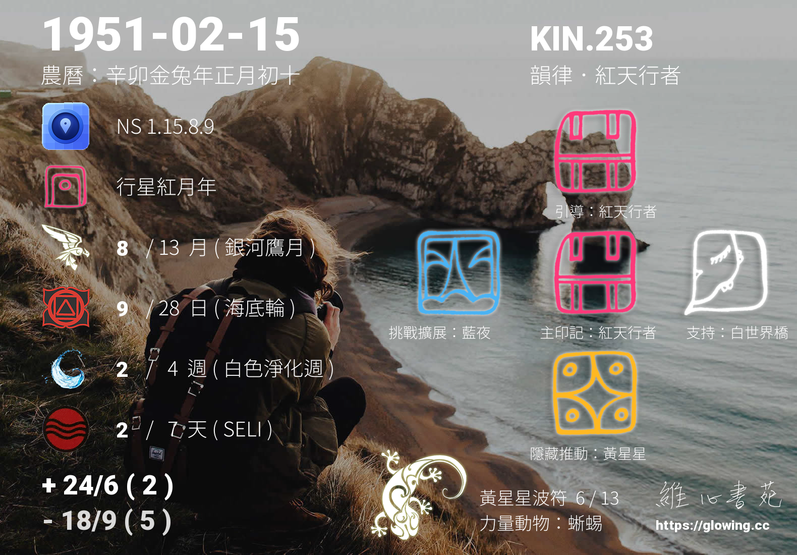 我們可以稱 KIN 253 為 【韻律紅天行者】 、 【韻律的紅天行者】 、 【黃星星波符 之 韻律紅天行者】 也可以是 【韻律紅天行者.黃星星波符】 ,你比較喜歡哪一個稱號呢?