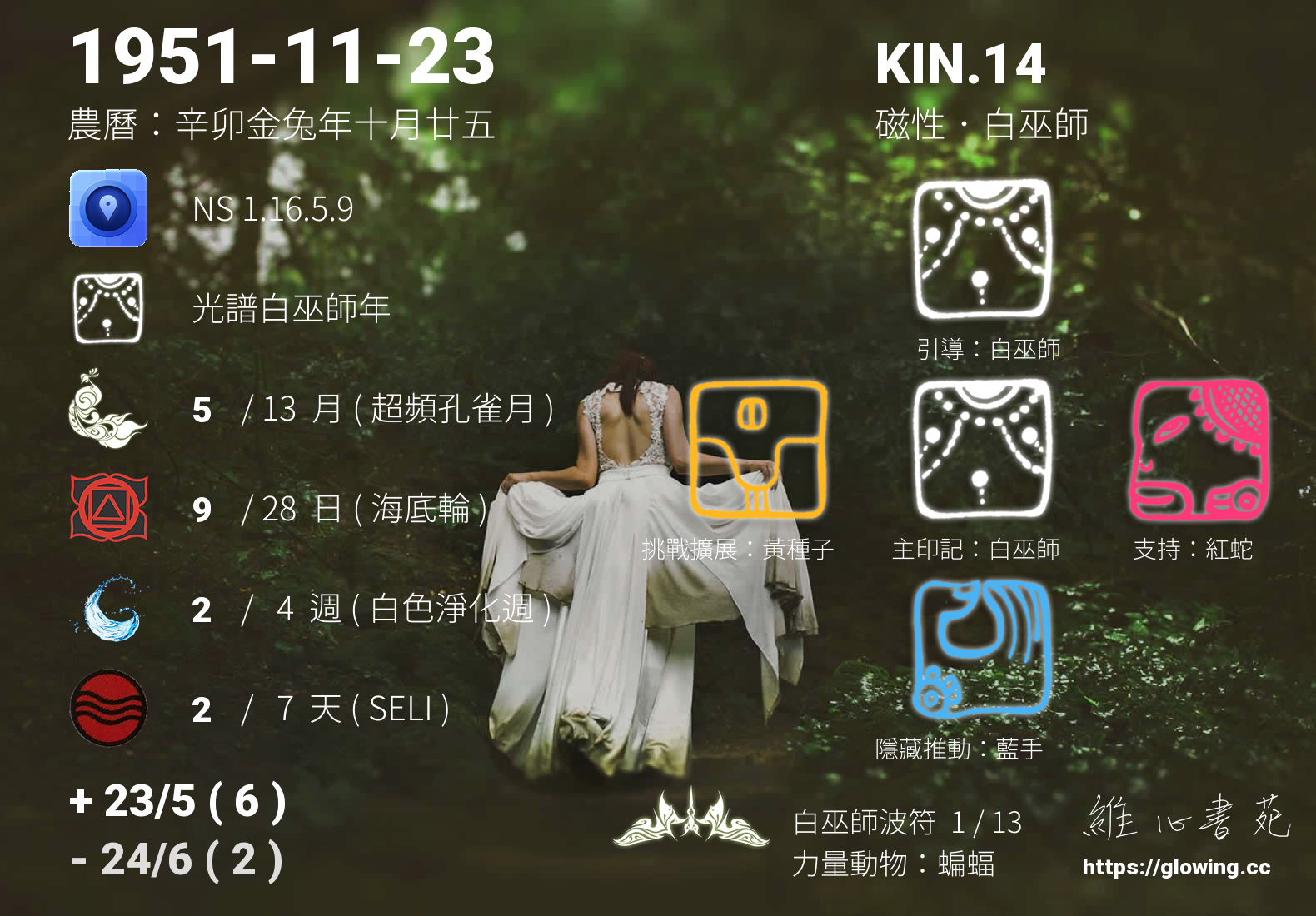 白巫師的引導依據KIN的調性不同會有五種可能性,KIN.14的引導圖騰是白巫師 , 白巫師引導著我們看見自己的不安,因為不安,所以我們尋求解答,因為不安,所以我在現實外,尋找安心的方向與方式。