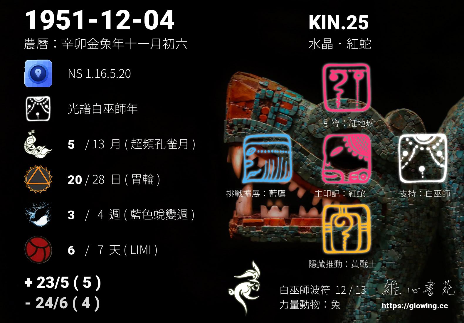 我們可以稱 KIN 25 為 【水晶紅蛇】 、 【水晶的紅蛇】 、 【白巫師波符 之 水晶紅蛇】 也可以是 【水晶紅蛇.白巫師波符】 ,你比較喜歡哪一個稱號呢?