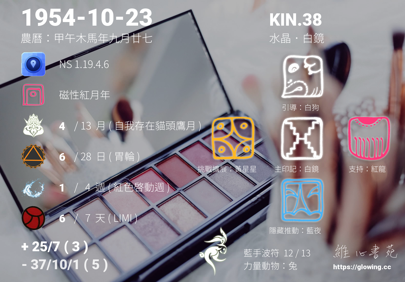 我們可以稱 KIN 38 為 【水晶白鏡】 、 【水晶的白鏡】 、 【藍手波符 之 水晶白鏡】 也可以是 【水晶白鏡.藍手波符】 ,你比較喜歡哪一個稱號呢?