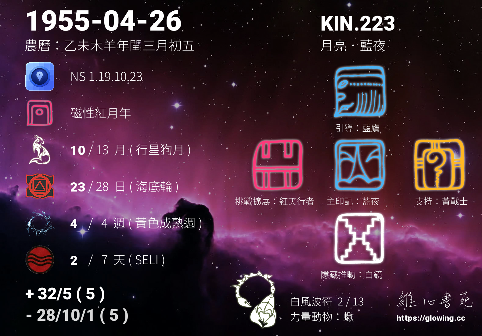 今天的星際原型圖騰為藍夜,我們稱之為主印記, 藍夜是夢想家的原型,有將夢想成真的天賦,直覺力強,在實踐夢想的過程中樂於分享將能更享豐盛。