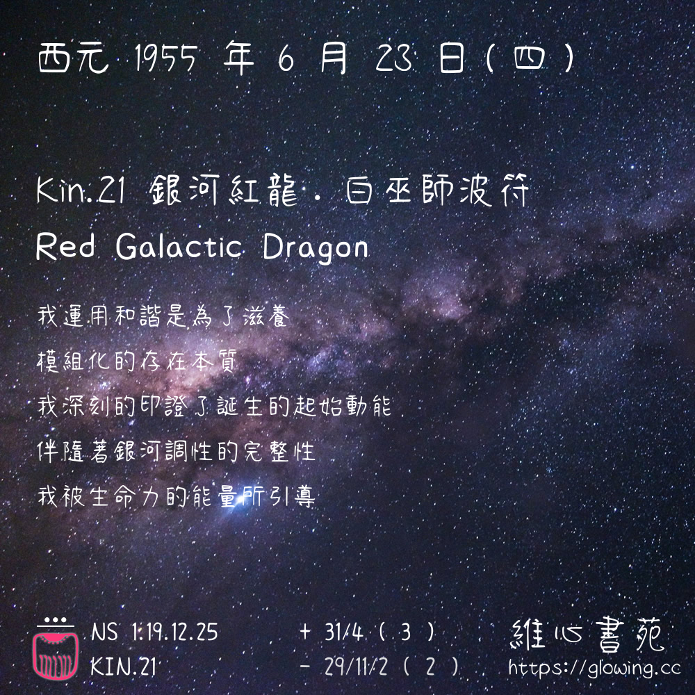 我們可以稱 KIN 21 為 【銀河紅龍】 、 【銀河的紅龍】 、 【白巫師波符 之 銀河紅龍】 也可以是 【銀河紅龍.白巫師波符】 ,你比較喜歡哪一個稱號呢?
