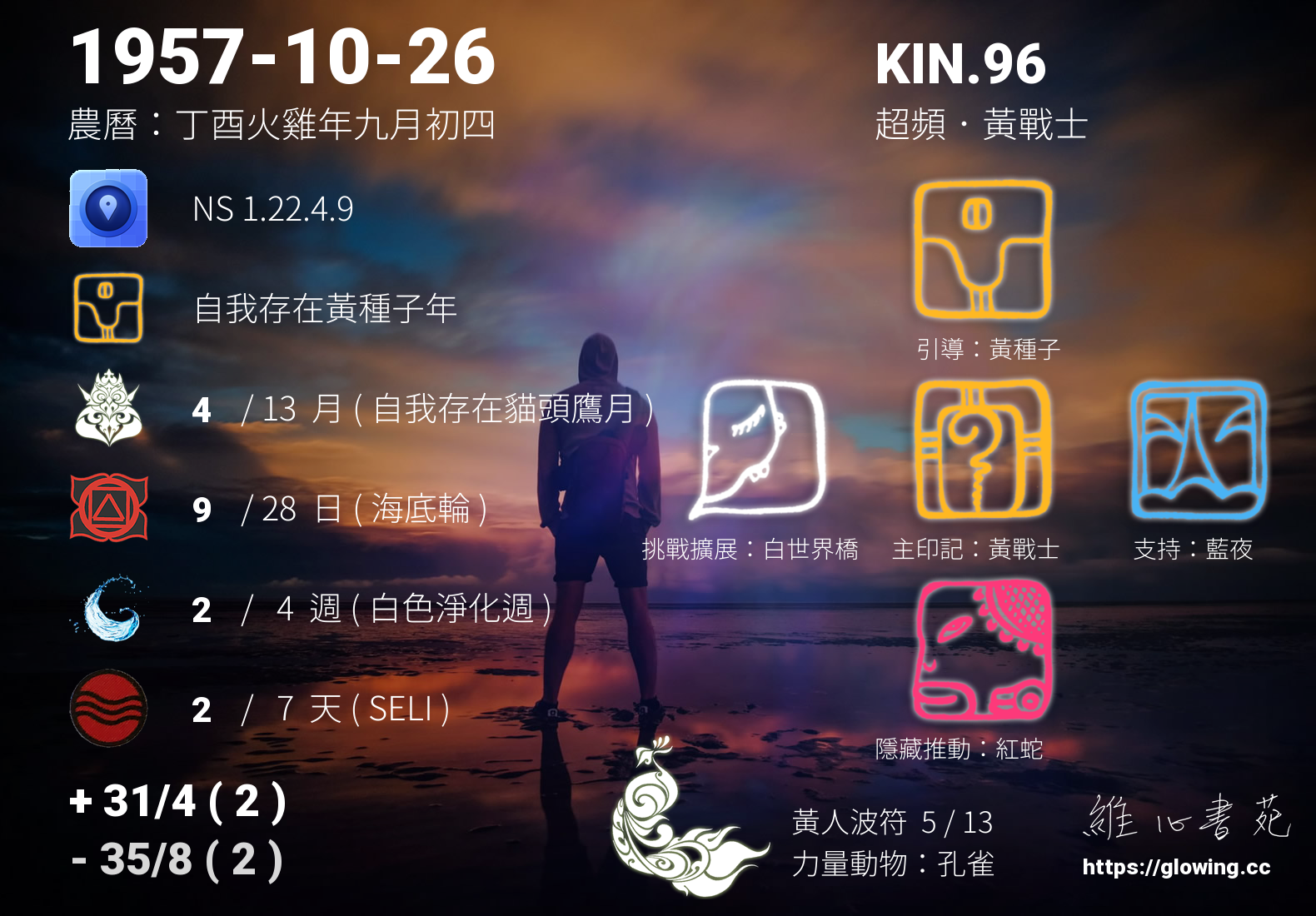 我們可以稱 KIN 96 為 【超頻黃戰士】 、 【超頻的黃戰士】 、 【黃人波符 之 超頻黃戰士】 也可以是 【超頻黃戰士.黃人波符】 ,你比較喜歡哪一個稱號呢?