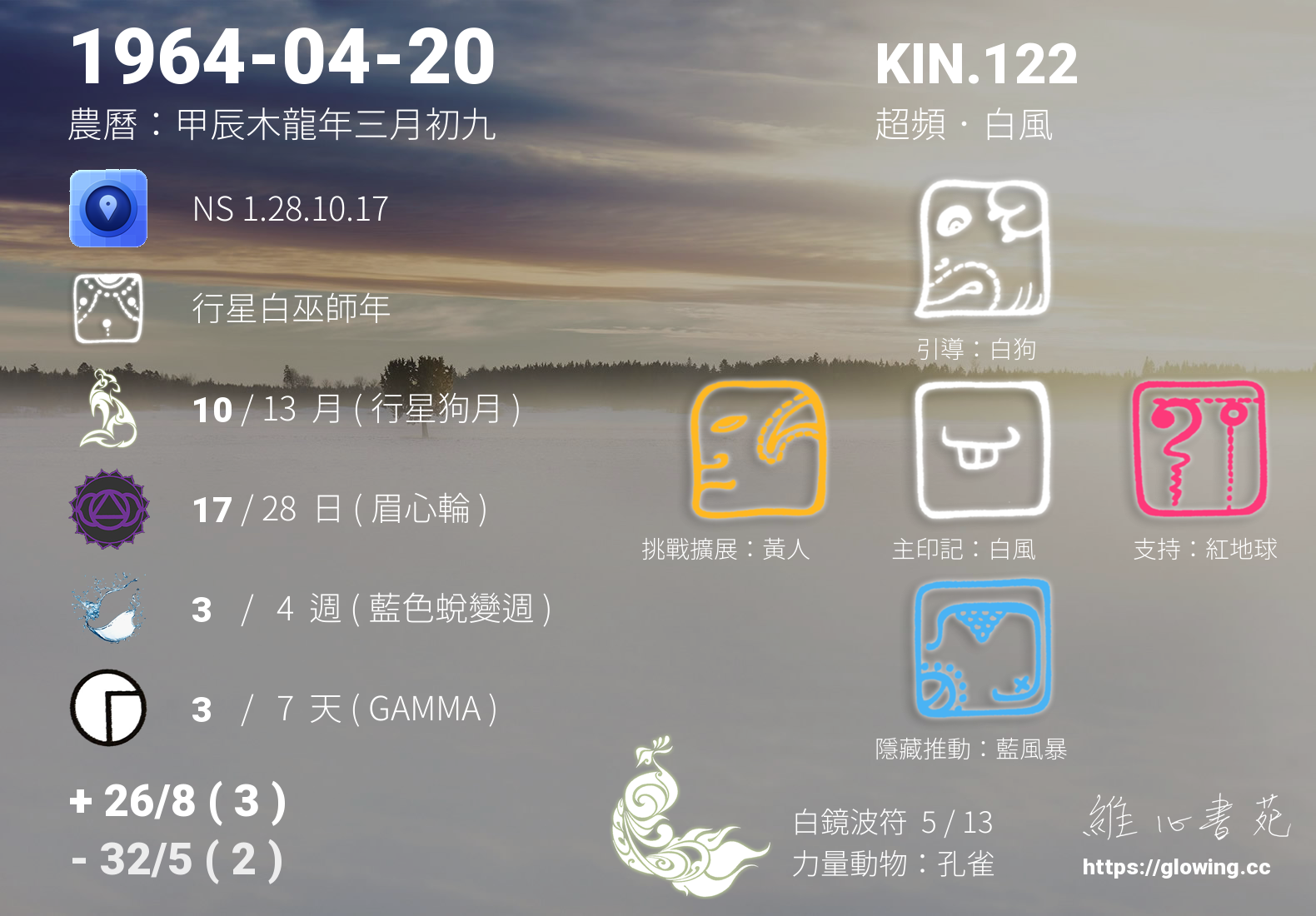 我們可以稱 KIN 122 為 【超頻白風】 、 【超頻的白風】 、 【白鏡波符 之 超頻白風】 也可以是 【超頻白風.白鏡波符】 ,你比較喜歡哪一個稱號呢?