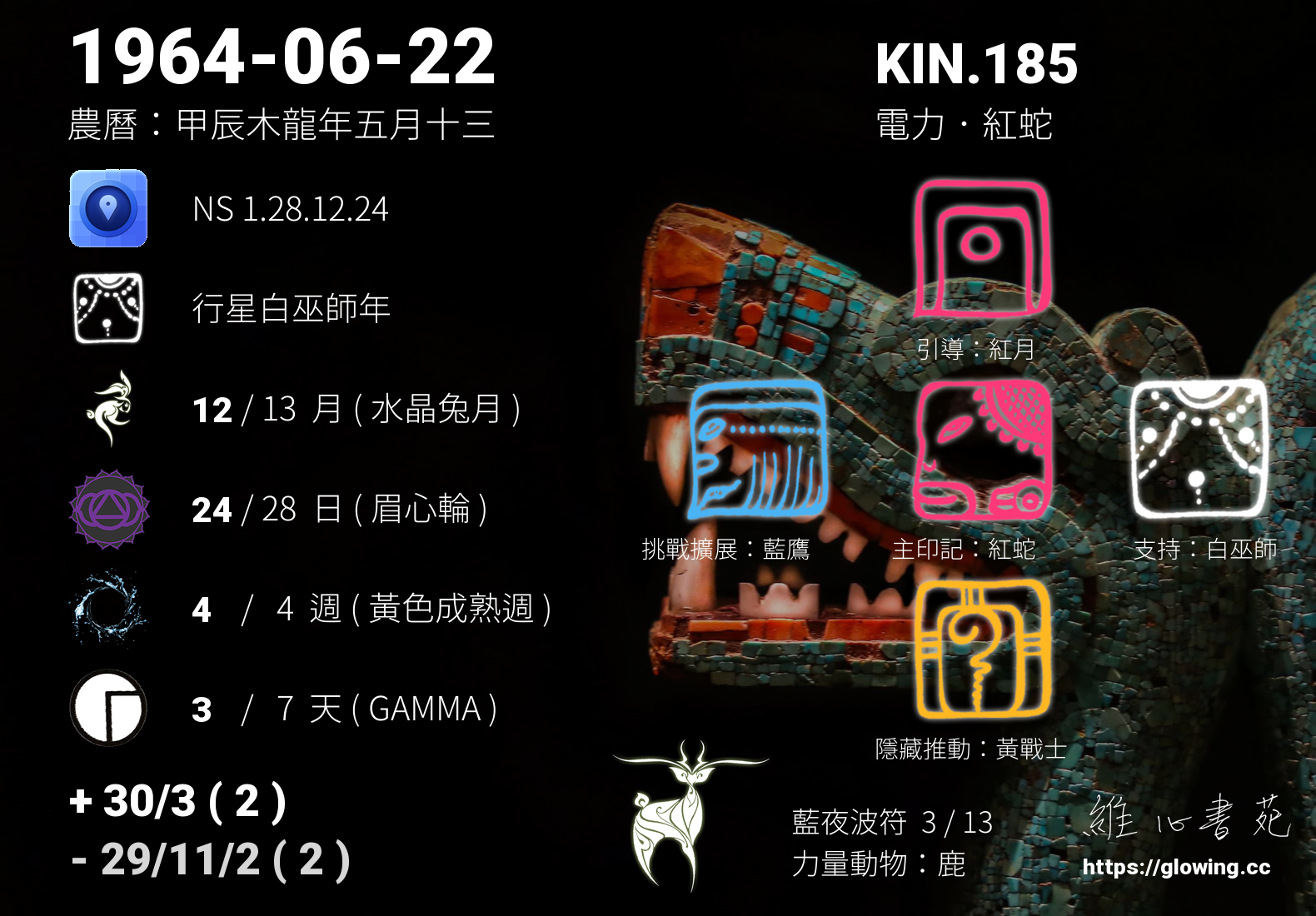 KIN.185 位於 藍夜波符 13 天中的第 3 天,銀河音階為調性 3