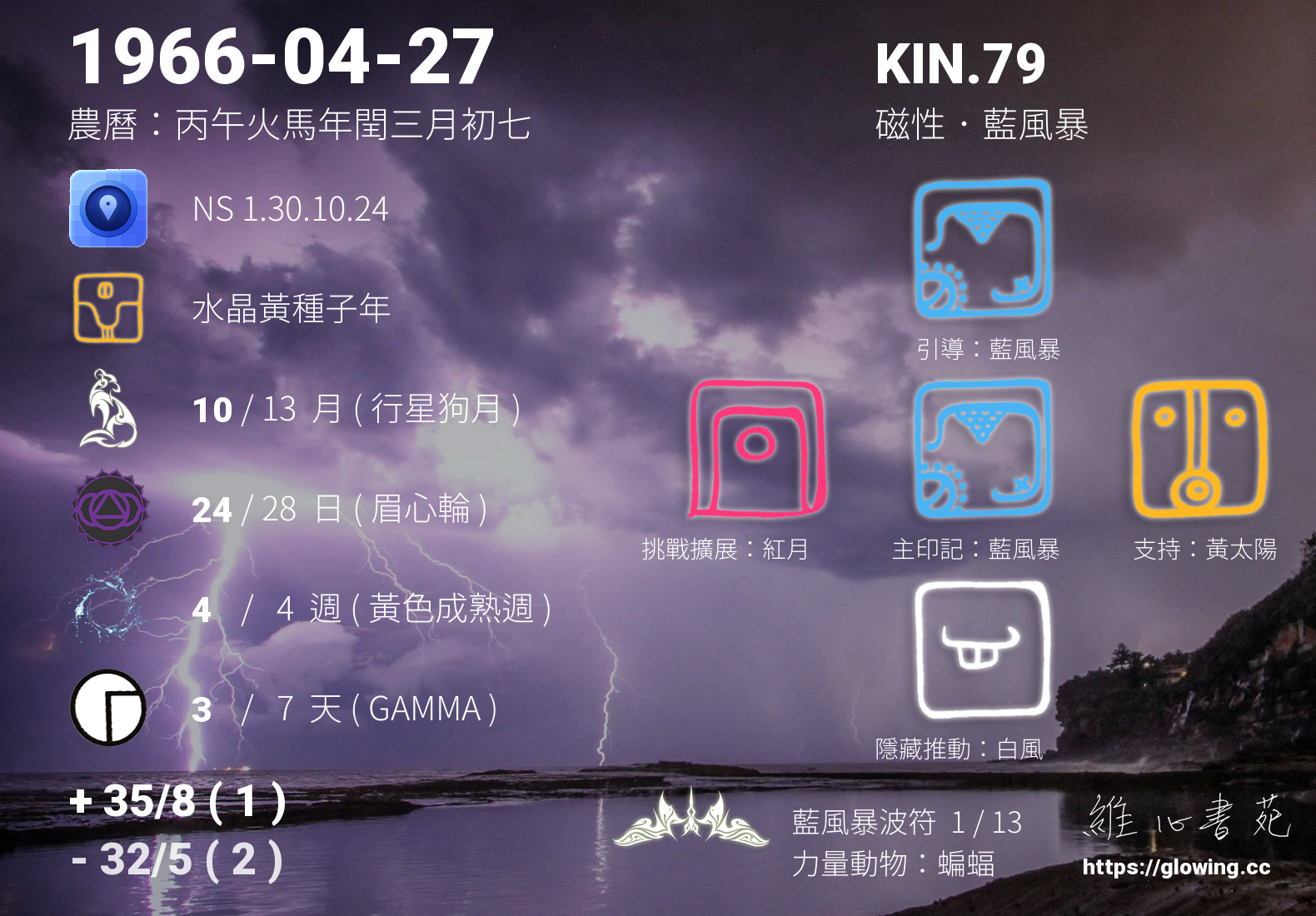 今天的星際原型圖騰為藍風暴,我們稱之為主印記, 藍風暴象徵著蛻變的過程,並非縝密規畫的套路,而是一種自然或突然的轉化,時候到了的汰舊換新動能。
