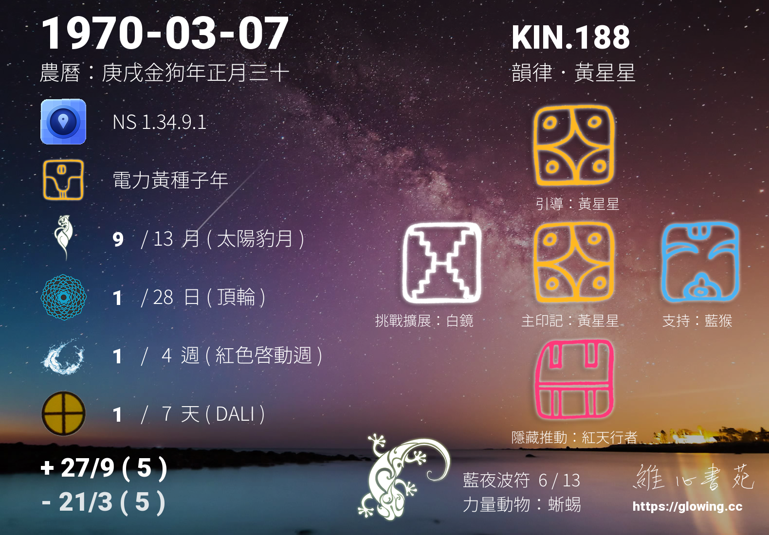 KIN.188 位於 藍夜波符 13 天中的第 6 天,銀河音階為調性 6