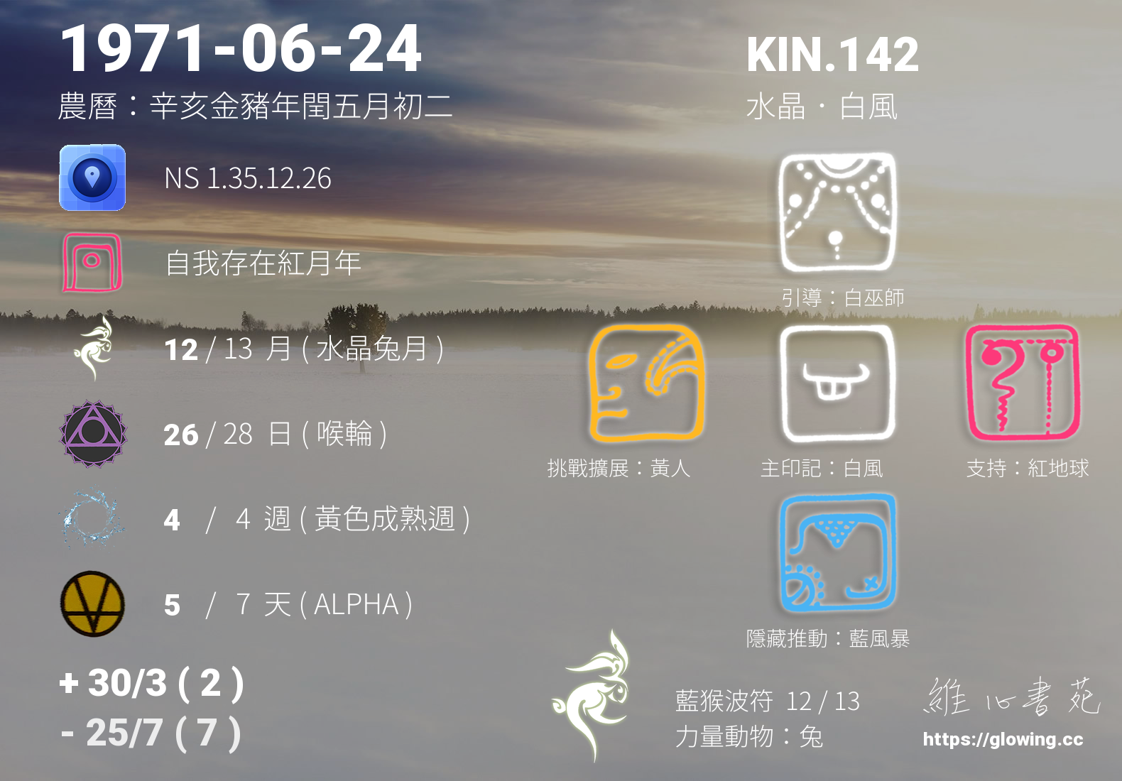 我們可以稱 KIN 142 為 【水晶白風】 、 【水晶的白風】 、 【藍猴波符 之 水晶白風】 也可以是 【水晶白風.藍猴波符】 ,你比較喜歡哪一個稱號呢?