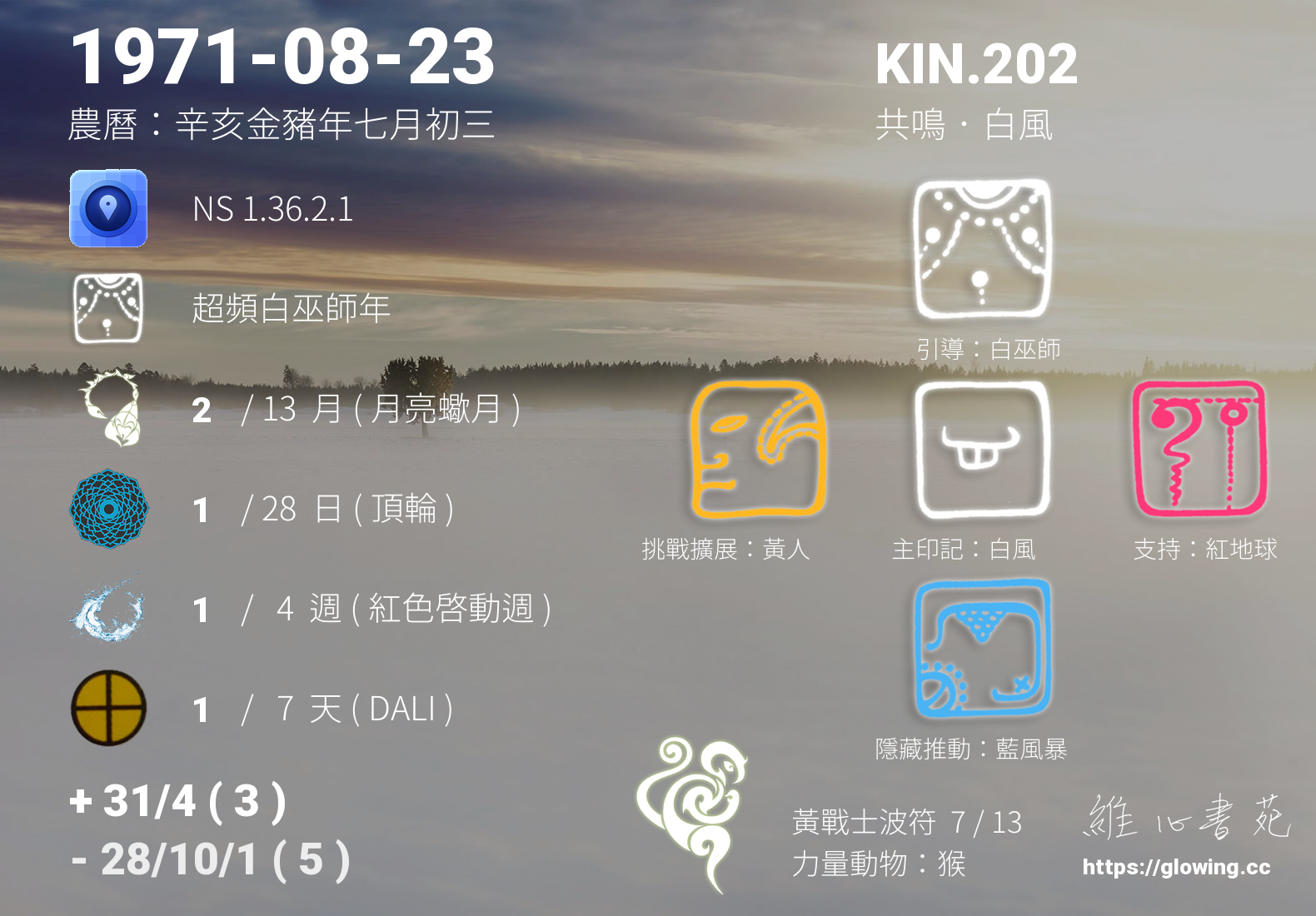 我們可以稱 KIN 202 為 【共鳴白風】 、 【共鳴的白風】 、 【黃戰士波符 之 共鳴白風】 也可以是 【共鳴白風.黃戰士波符】 ,你比較喜歡哪一個稱號呢?