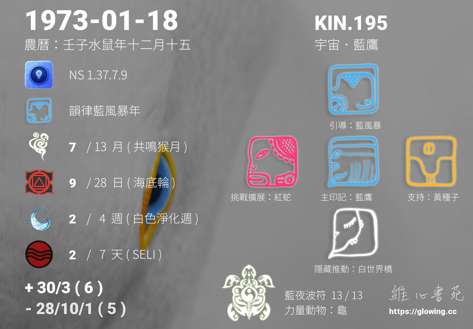 我們可以稱 KIN 195 為 【宇宙藍鷹】 、 【宇宙的藍鷹】 、 【藍夜波符 之 宇宙藍鷹】 也可以是 【宇宙藍鷹.藍夜波符】 ,你比較喜歡哪一個稱號呢?