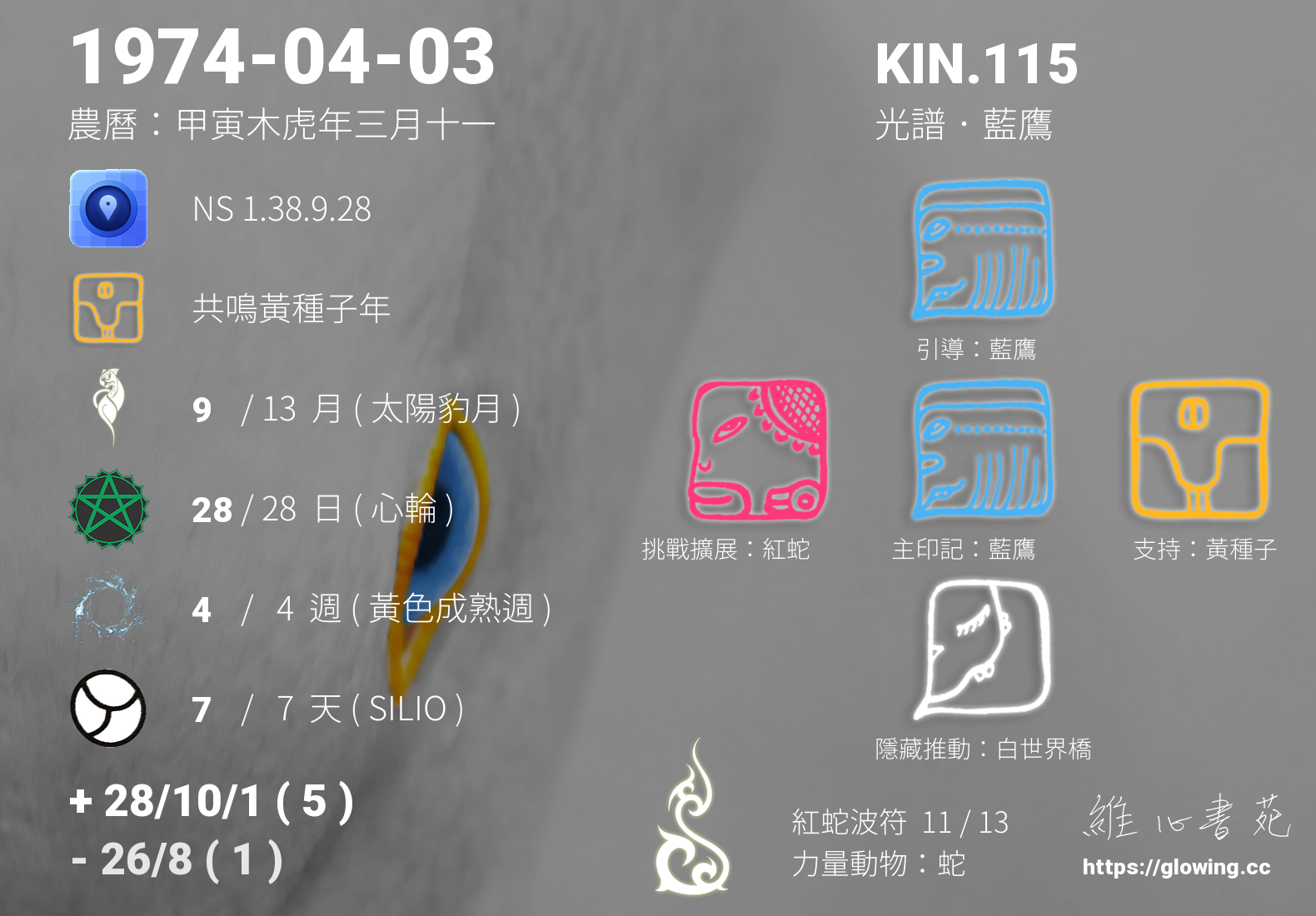 - PSI(行星記憶資料庫):KIN.155 水晶 藍鷹
