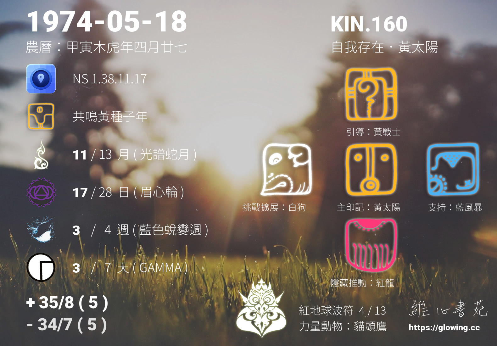 - PSI(行星記憶資料庫):KIN.219 光譜 藍風暴