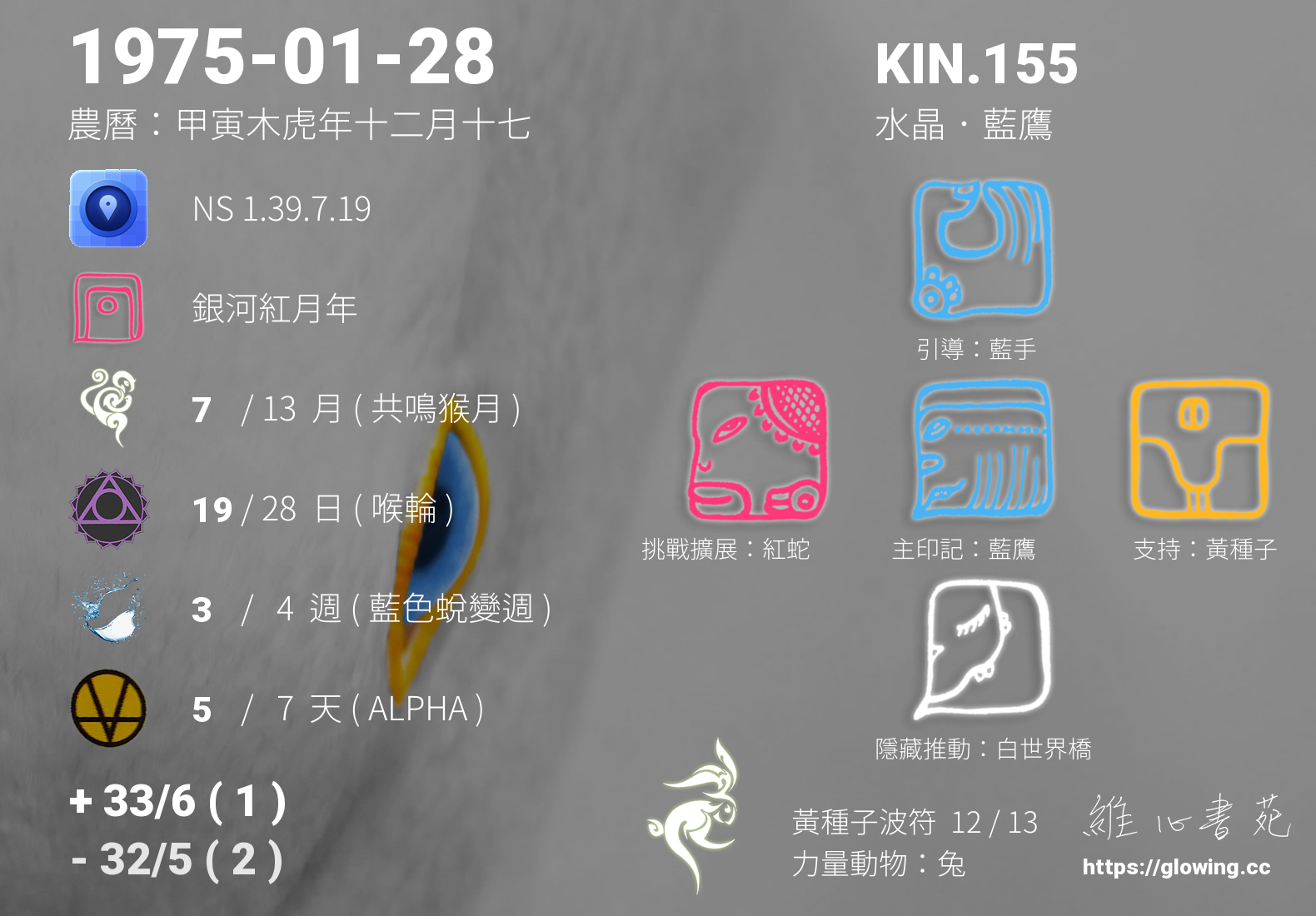 - PSI(行星記憶資料庫):KIN.135 超頻 藍鷹