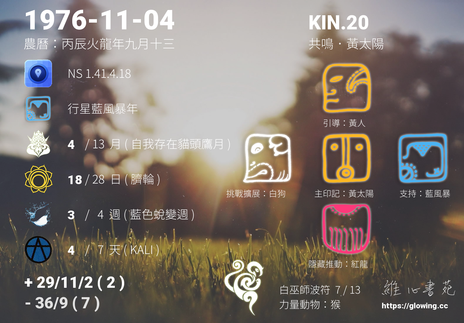 我們可以稱 KIN 20 為 【共鳴黃太陽】 、 【共鳴的黃太陽】 、 【白巫師波符 之 共鳴黃太陽】 也可以是 【共鳴黃太陽.白巫師波符】 ,你比較喜歡哪一個稱號呢?