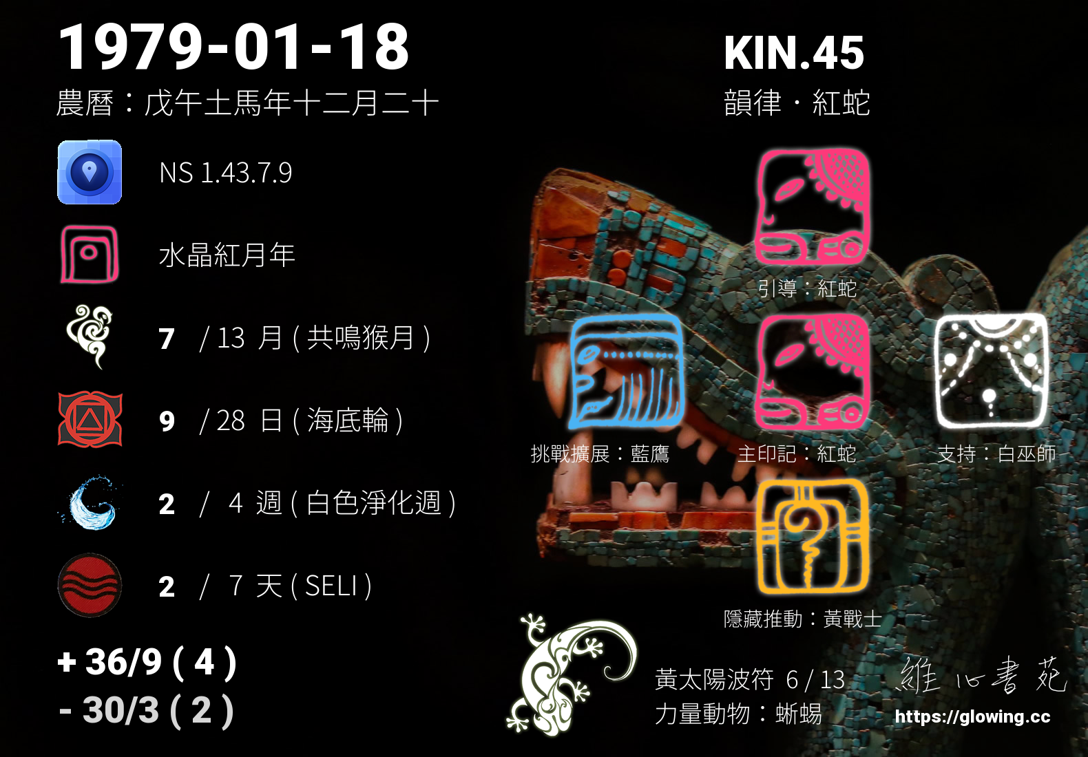 我們可以稱 KIN 45 為 【韻律紅蛇】 、 【韻律的紅蛇】 、 【黃太陽波符 之 韻律紅蛇】 也可以是 【韻律紅蛇.黃太陽波符】 ,你比較喜歡哪一個稱號呢?