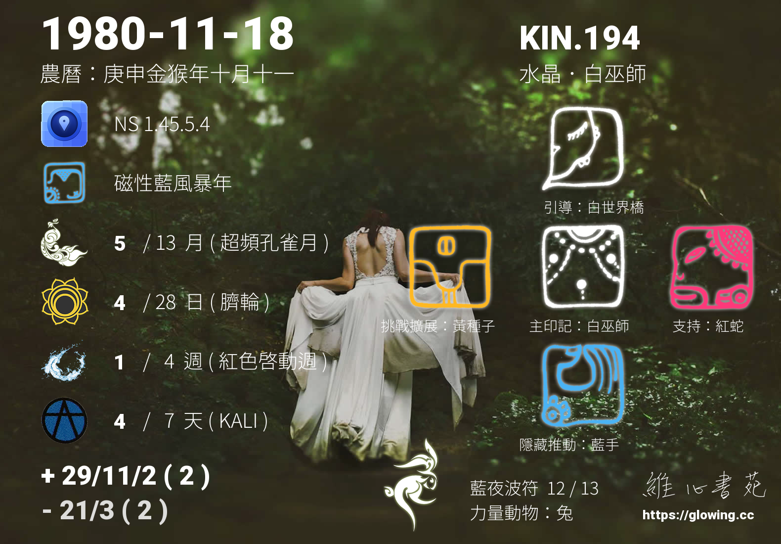我們可以稱 KIN 194 為 【水晶白巫師】 、 【水晶的白巫師】 、 【藍夜波符 之 水晶白巫師】 也可以是 【水晶白巫師.藍夜波符】 ,你比較喜歡哪一個稱號呢?